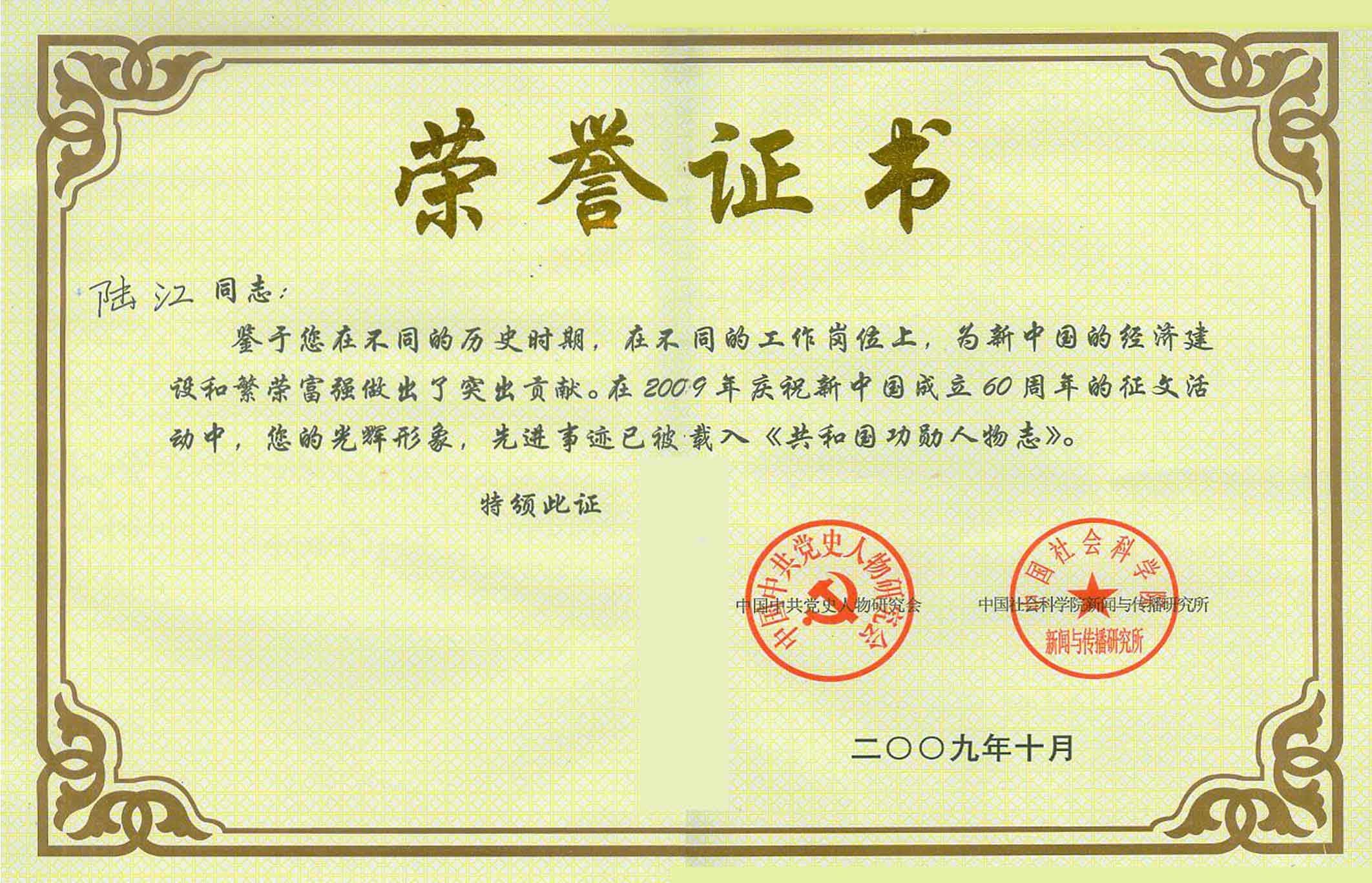 陸江榮獲引領行業(yè)發(fā)展杰出貢獻人物證書 --------卓康公司榮獲全國質(zhì)量、服務、信譽AAA級品牌證書